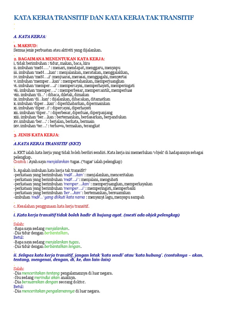 Kata Kerja Transitif Dan Kata Kerja Tak Transitif Pdf Document
